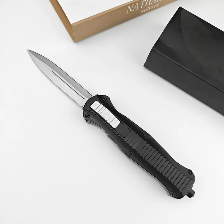 The sturdy handle is forged from non-reflective black anodized 6061-T6. The lock-tightening ensures a quick grip without damage. When speed is critical, the side slide button allows quick access to the blade. When you are done, just a stealth pull slides to retract the blade. Reversible exquisite carrying delicate hair design.