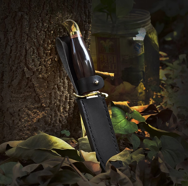 Equipped with S-shaped hand guards, it feels a bit luxurious. This knife is suitable for white-collar workers or successful people with independent desks. Remove the knife bag and scabbard, and equip it with a small knife holder. It can be placed on the desk as a table knife. It can open envelopes, cut paper, decorate, and play with it. If you have guests visiting, you can use it as a conversation starter to talk about knife appreciation; if you have a barbecue party, you can pick it up as a hunting knife, put it in its sheath, and go on a quick trip. In addition, if it really needs to be used, it can also be used as a boot knife. Its small size is easy to carry.