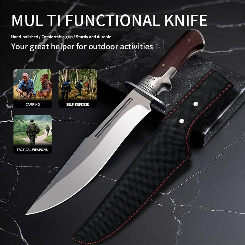 Premium stainless steel fixed blade construction ensures excellent durability and edge retention for outdoor use