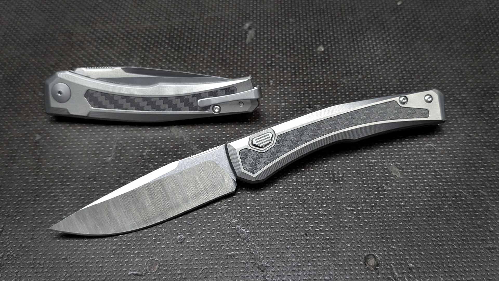 Handle Material: Sandblasted Titanium-Carbon Fiber Inlay