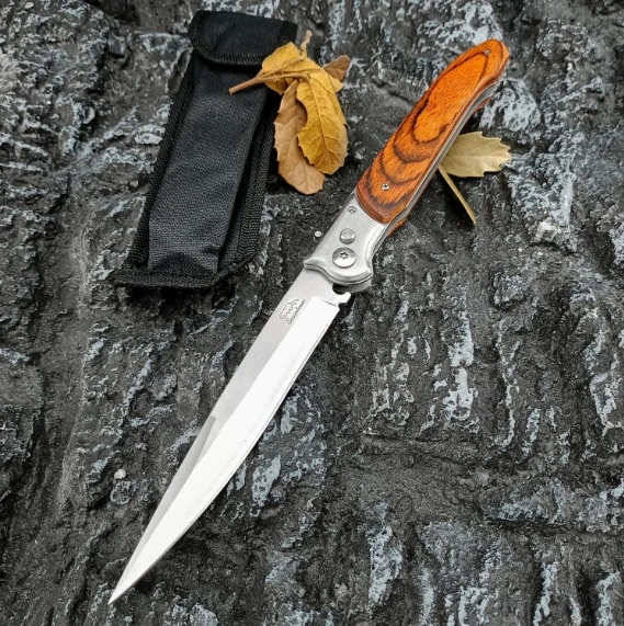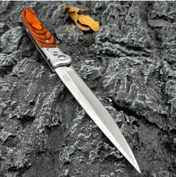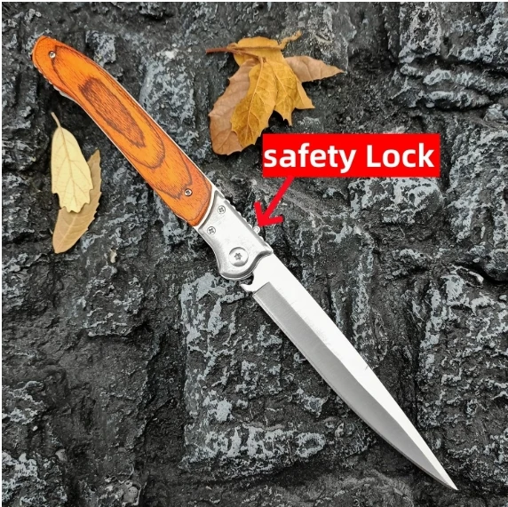 Sturdy and durable: The blade of this men's pocket knife is made of stainless steel, and the handle of this tactical knife is made of wood. Our hunting knife is designed to last and withstand harsh conditions.